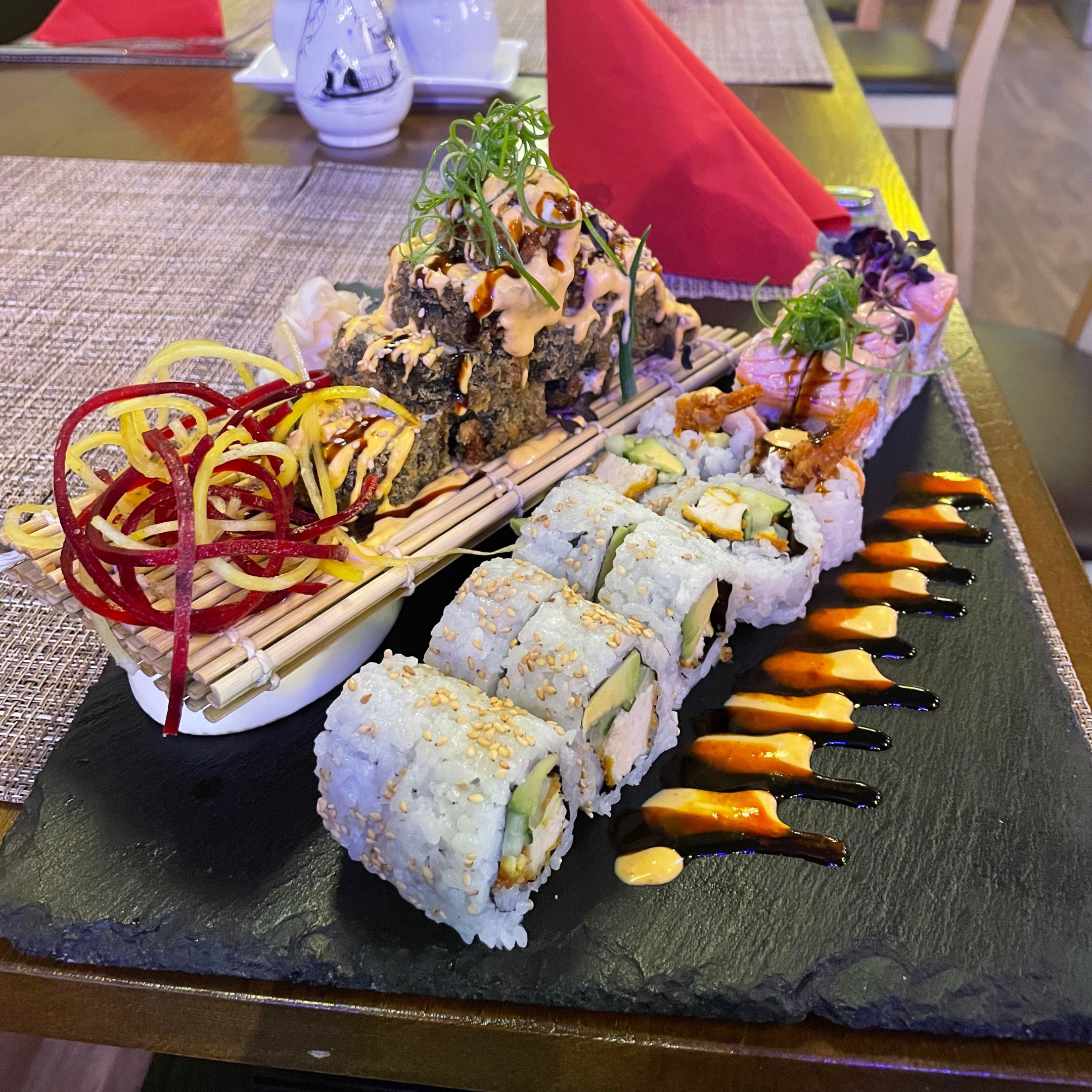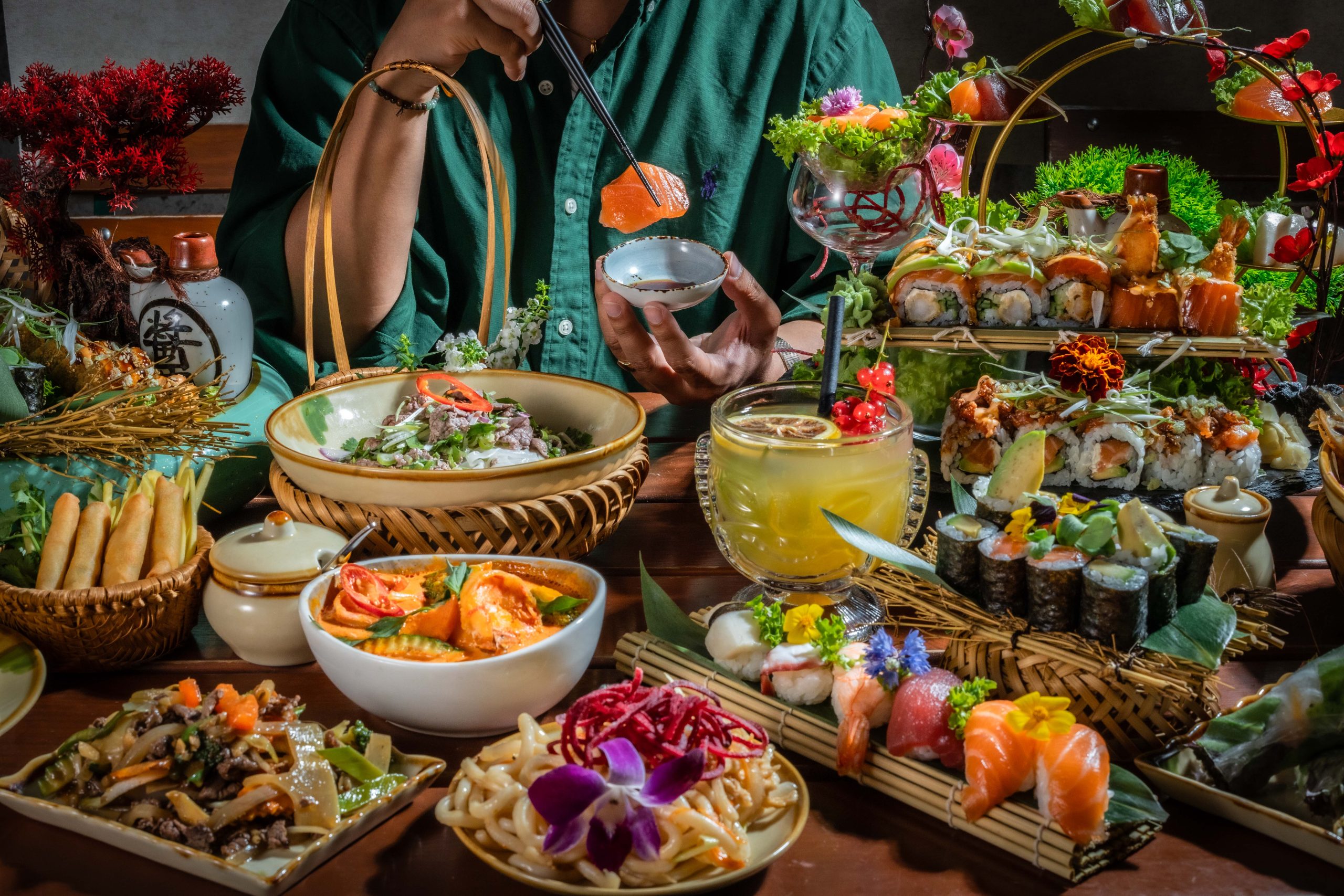 Genießen Sie frisches Sushi, würzige Currys, knusprige Frühlingsrollen und aromatische Wok-Gerichte, die aus hochwertigen Zutaten zubereitet werden. Auch vegane Optionen und Spezialitäten aus Asiens Nachbarländern stehen zur Auswahl.